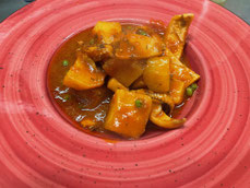 Verse zeekat of Sephia (inktvis familie) groene erwtjes, tomaat, look, witte wijn, aardappeltjes, een traditioneel gerecht uit de Adriatische kust!