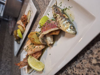 Fresh grilled squid, baked potatoes, fresh salade, homemade tartare sauce.