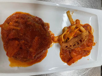 Om te delen gemengde koude en warme hapjesschotel uit de Italiaanse traditie: Peperonata, Bufala DOP, Salame Abruzzo, Vitello Tonnato, Kroketje van rog en Broccolisaus, Gevulde courgette en Pistache, Polpette rundballetje met Parmigianosaus, Gevulde aubergine met tomatensaus.